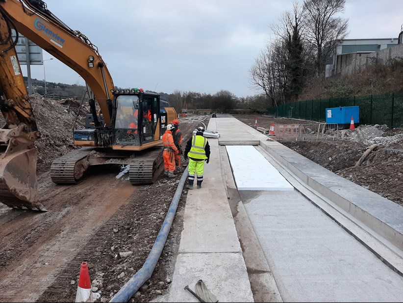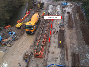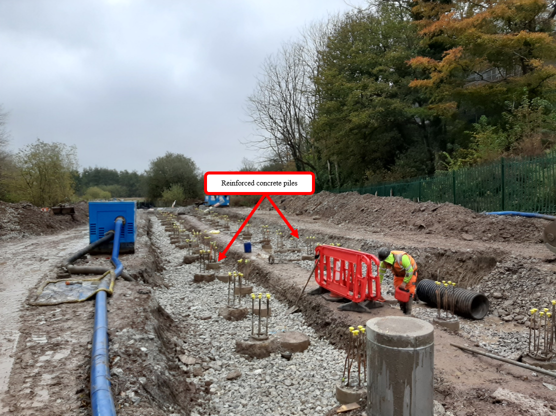 Due to poor ground conditions, extensive ground improvement works were required, including; piling, and excavation/replacement of existing ground in advance of the main installation. These ground improvement works were to ensure that any settlement would not impact the main once the road embankments were completed.